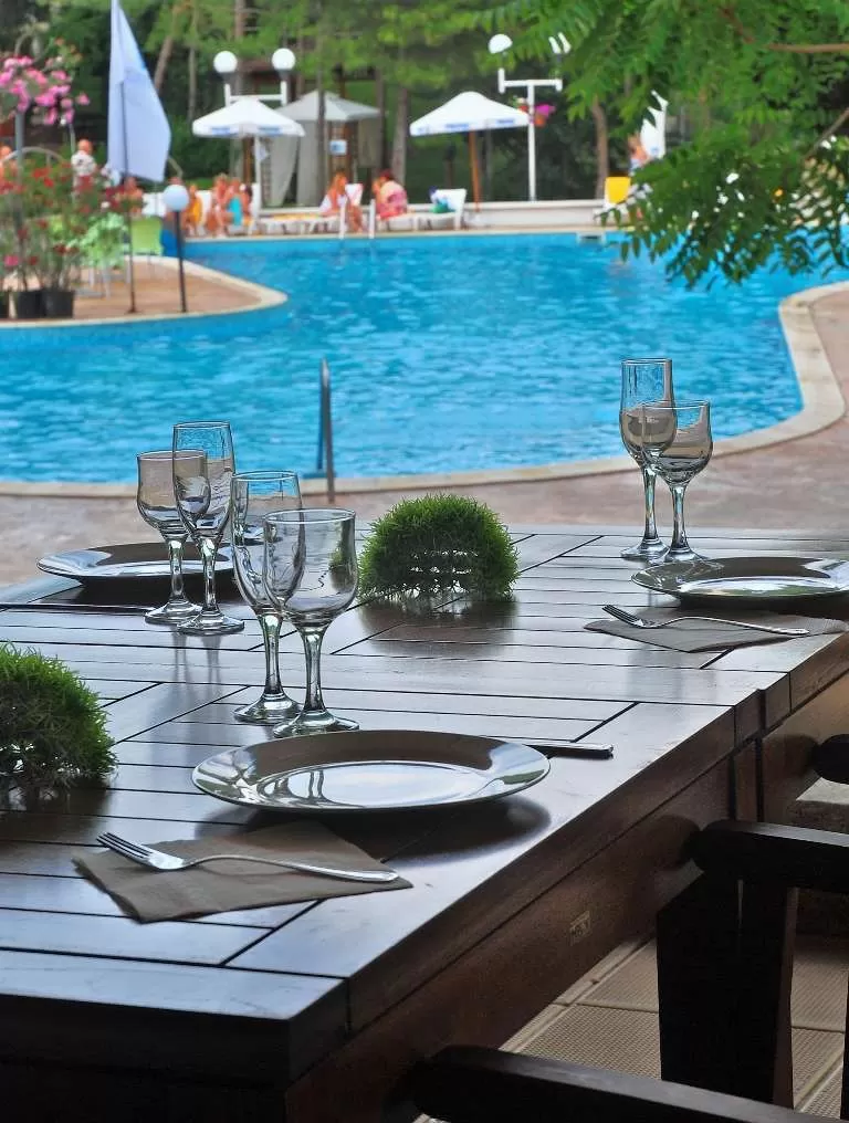 Бесплатно: открытый бассейн • настольный теннис • бильярд • дартс • боча • шахматы • пляжный волейбол • аэробика • аква-аэробика • анимационные программы.