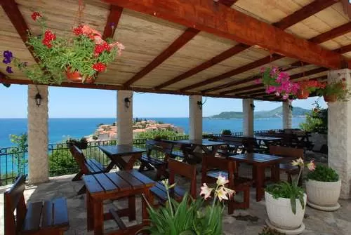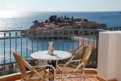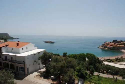 Сервис: уборка и смена полотенец – ежедневно, постельное белье меняется раз в 3-4 дня, услуги прачечной за доп. плату (по договоренности с горничной). Примечания: не принимаются гости с животными, не разрешено готовить; хозяин продает ракию и лозу собственного производства. Великолепные виды с балконов на море и Св. Стефан.