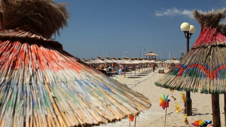 Общественный песчаный; зонты, шезлонги – платно. У бассейна: зонты - платно, шезлонги – бесплатно.