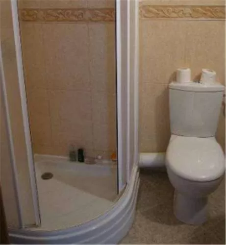 В ванной: душевая кабина • фен • полотенца.