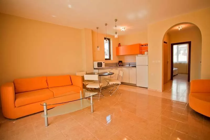 Гостиная и одна или две спальни, разделенные дверью • индивидуальный кондиционер • спутниковое TV • полностью оборудованный кухонный бокс • санузел с душем • балкон • пол – керамическая плитка • уборка номера – ежедневно • смена постельного белья – 2 раза в неделю • смена полотенец – 2 раза в неделю.