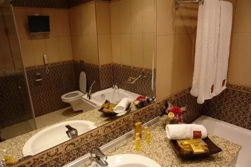 В ванной: • ванная •TV• фен • халат.