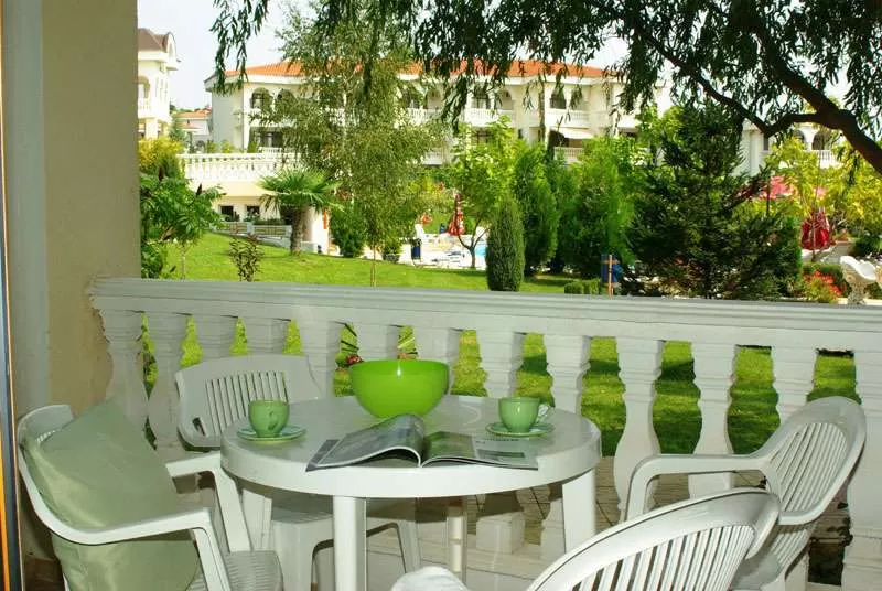 Односпальный апартамент (60 m²), двуспальный апартамент (85 m²). Он состоит из 3 корпусов, окруженных пышным зеленым садом. 4 открытые бассейна (2 из которых детские) с лежаками и зонтиками, бар-бассейн, 2 ресторана, рецепция, лобби-бар, большая открытая детская площадка, и сцена для анимации на открытом воздухе.