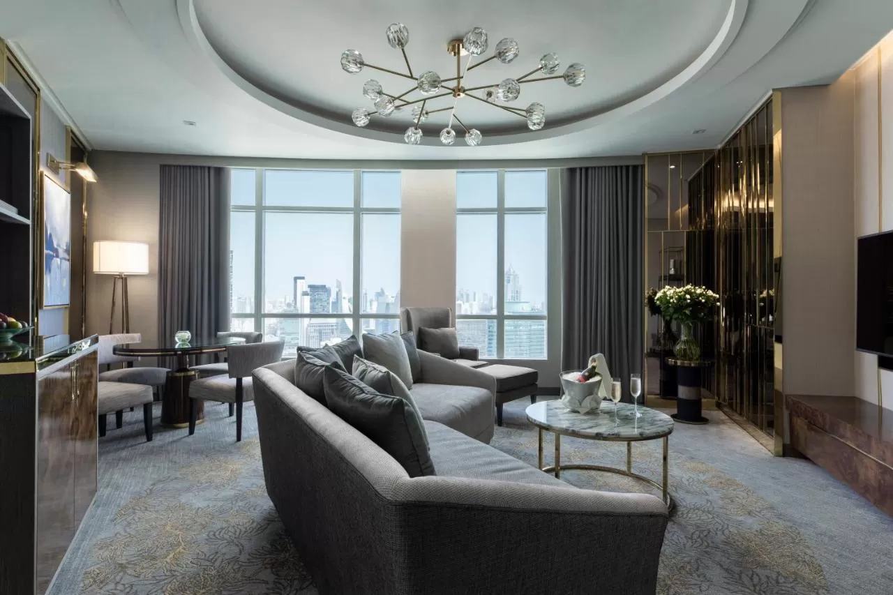 В номерах имеются окна от пола до потолка, персональный сейф, телевизор с плоским экраном, просторная ванная комната с ванной, халаты.