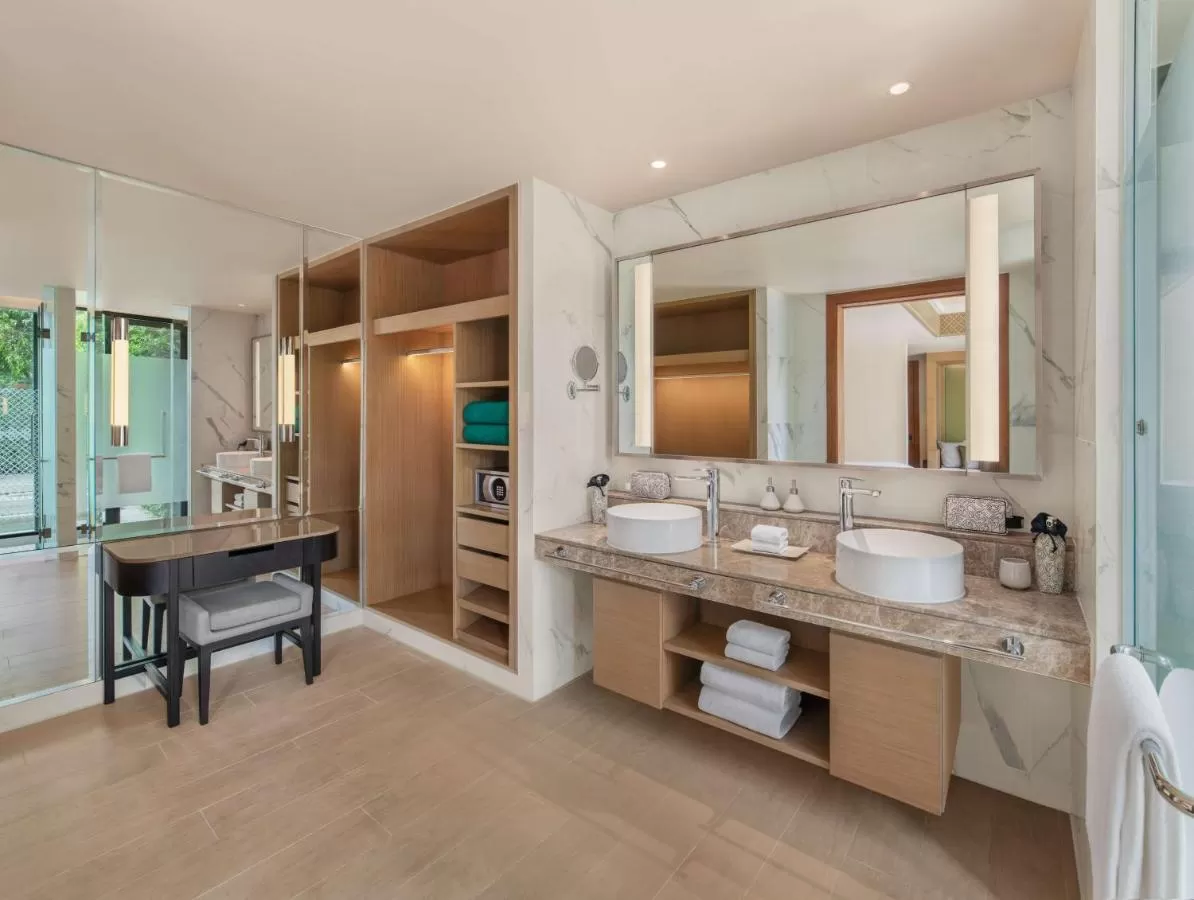 В оформлении номеров использованы произведения тайского искусства и изысканные элементы из дерева, имеются просторные гостиные уголки с видом на бассейн, телевизор с плоским экраном.
