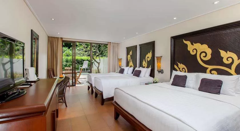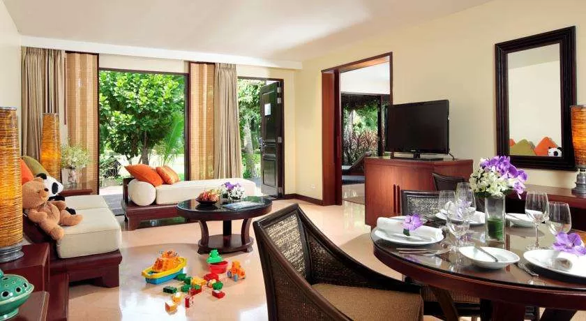 На территории есть 4 открытых бассейна, СПА-салон, тренажерный зал и 3 ресторана. Желающие смогут взять уроки тайской кухни.