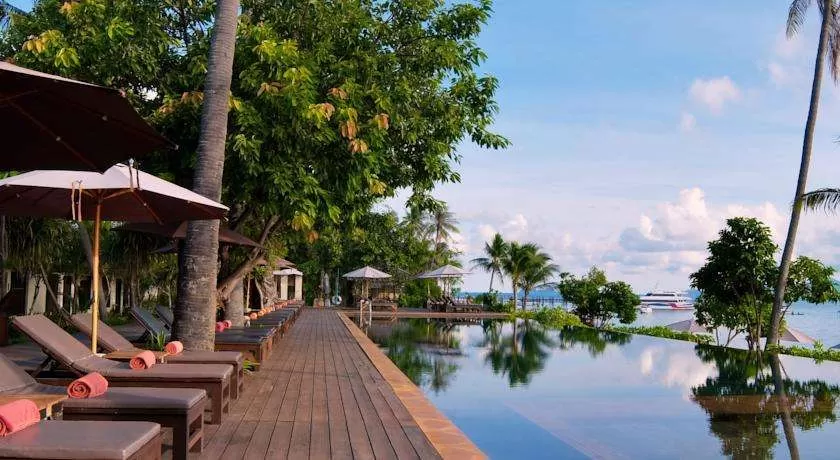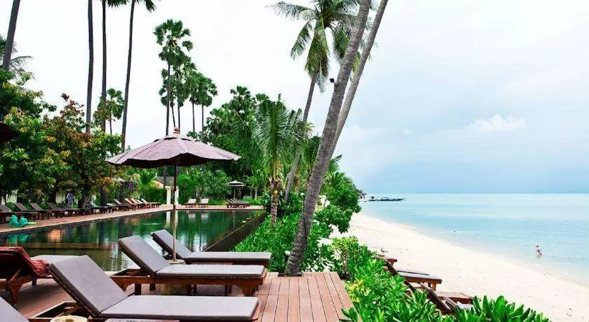 Отель расположен на пляже Менам. Размещение предлагается в виллах.