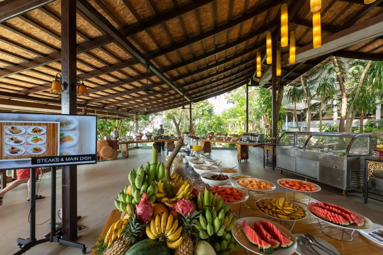 В ресторане отеля подают тайские и интернациональные деликатесы, наслаждаясь панорамным видом на море. Также гости могут заказать доставку еды и напитков в номер.