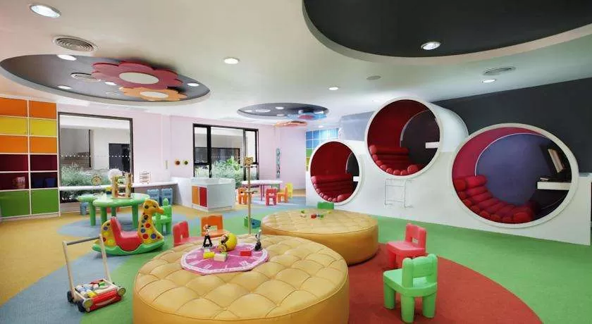 Детский бассейн, водная горка, детский клуб, детская кроватка, детское меню, услуги няни.
