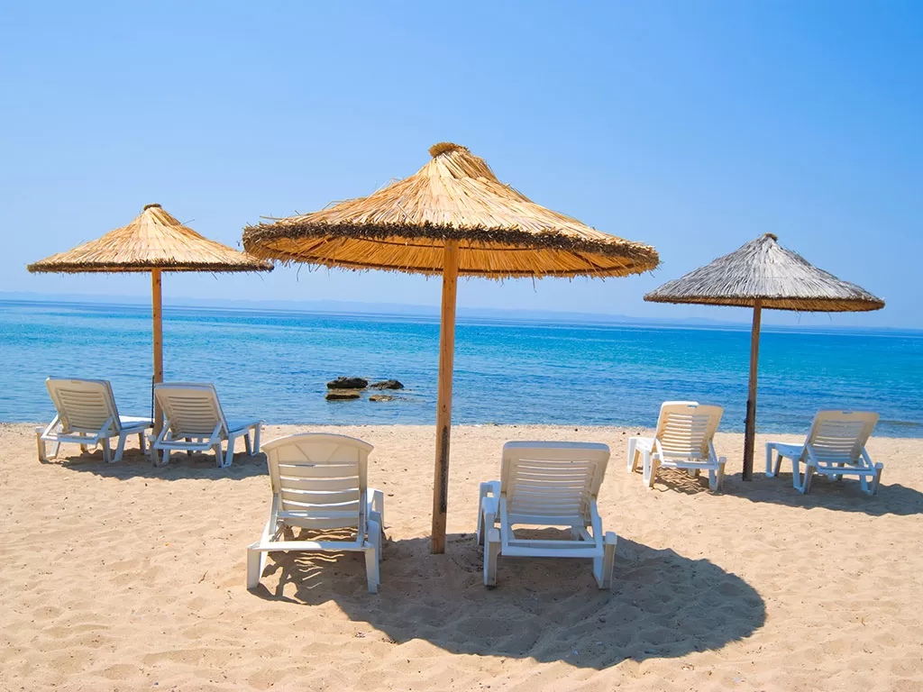 Отель расположен на собственном песчаном пляже. Зонты и лежаки - бесплатно.