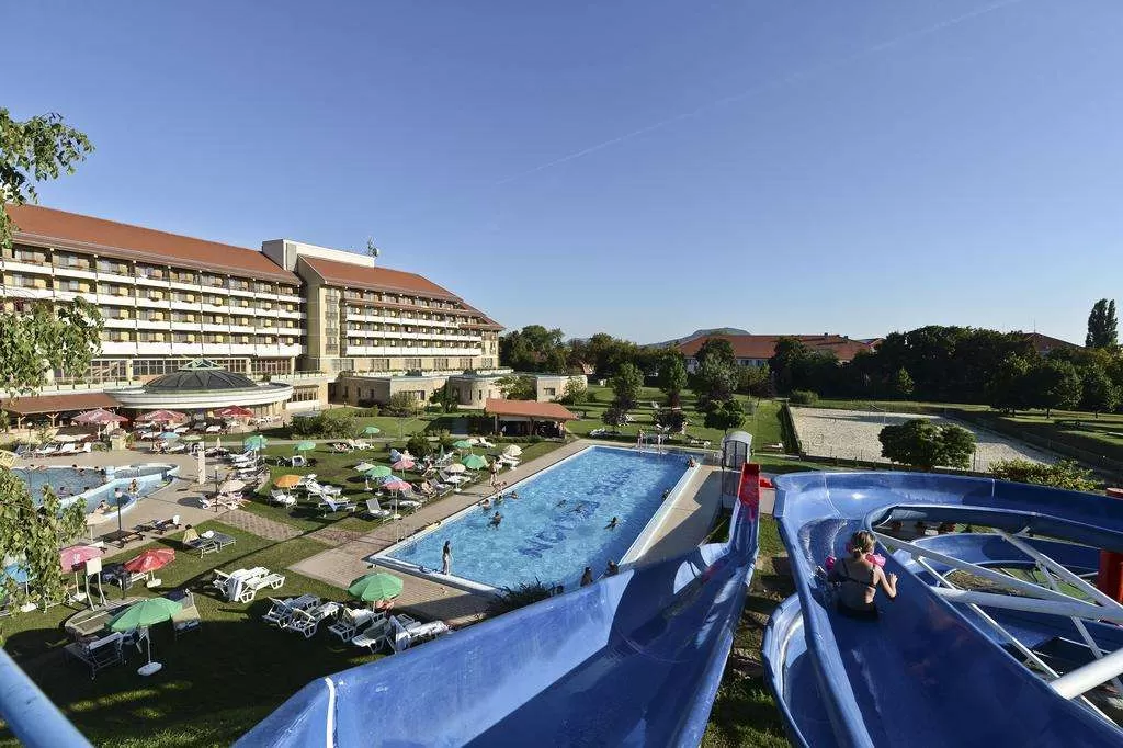 Расположен в центре г.Тапольца, в 100 м. от пещер с подземным озером. Располагает собственным бальнеологическим лечебным центром.