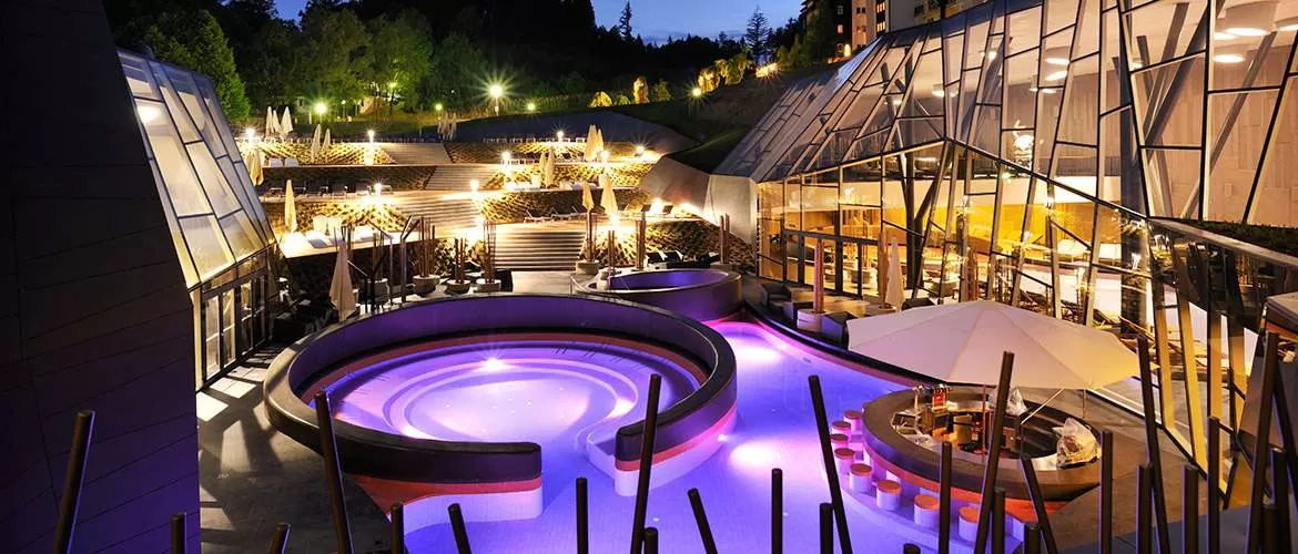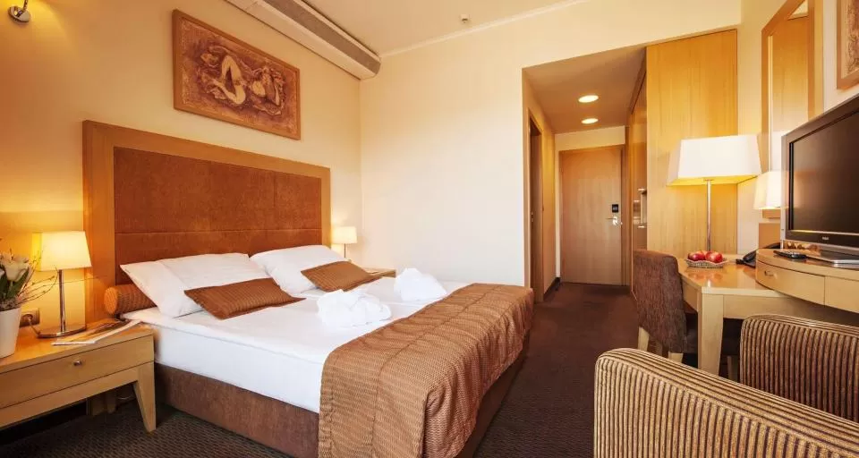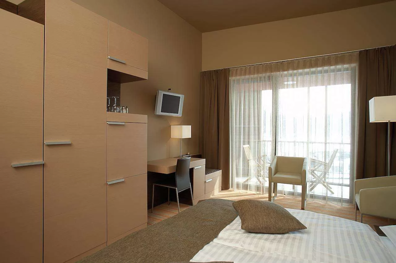 Ресторан «Базиликум» с террасой на 300 мест, ресторан a’la carte “Гратиола», зал для встреч, Loby-бар «Барага», кофе-бар, винотека «Вирстен», Салон красоты, детский «Мини-клуб», Велнесс-центр «SPA Armonia», магазины одежды и сувениров, гаражи. По подземному переходу гости отеля могут попасть в велнесс-центр «Termalia», отель «Breza» и апарт-отель «Rosa». На рецепции отеля можно заказать русский телеканал. Веллнес центр «SPA Armonia», площадью 400 кв.м, с четырьмя веллнесс-зонами - «Вода», «Воздух», «Земля» и «Огонь», залы для занятия фитнеcсом, помещения для медитации и релаксации, индивидуальные ванны с природной термальной водой. Центр предлагает современные и уникальные программы формирования тела, обучение техникам релаксации, уход за кожей лица с использованием профессиональной косметики лучших фирм мира. Детский «Мини клуб» расположен рядом с бассейнами термального центра «Термалия», имеет детский садик, который принимает детей в возрасте от 5 лет без сопровождения взрослых. принимают детей возраста от 5 лет и больше. Большую часть времени с этом саду работает русскоговорящая няня.