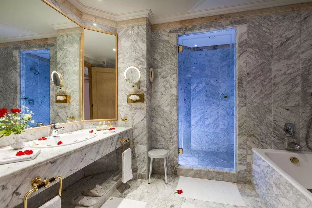 Отель состоит из одного U-образного четырехэтажного корпуса. Всего в отеле 211 номеров и 1 вилла: junior suites (73 м2, спальня с гостиной зоной, макс. 2 чел.); ambassador suites (110 м2, 2 спальни с гостиной зоной, межкомнатная дверь, макс 4 чел.); prestige suites (130 м2, 2 спальни, гостиная, межкомнатная дверь, 2 ванные комнаты, макс 4 чел.); presidential Villa — президентская вилла с гаражом, с крытым и открытым бассейнами, турецкой баней, спортивным залом и пятью спальными комнатами.