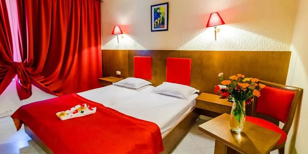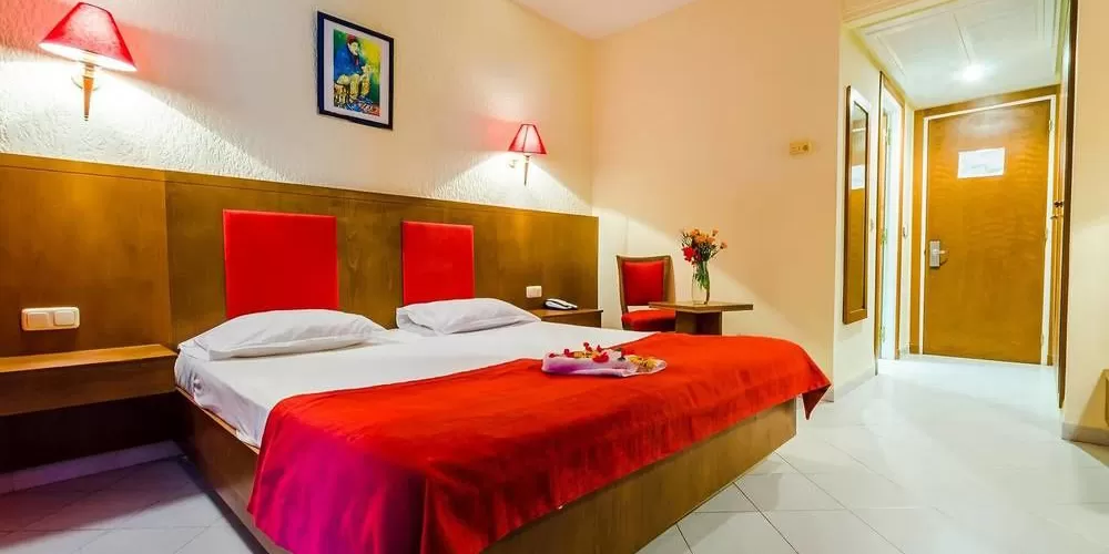 Номера в Houria Palace выполнены в современном стиле и оборудованы всем необходимым для комфортного отдыха. Среди оформления – стандартные номера с удобной кроватью, ванной комнатой и телевизором, улучшенные номера с балконом и видом на море или город, а также семейные номера, идеально подходящие для отдыха с детьми. Все номера оснащены кондиционером, мини-баром, бесплатным Wi-Fi и сейфом.