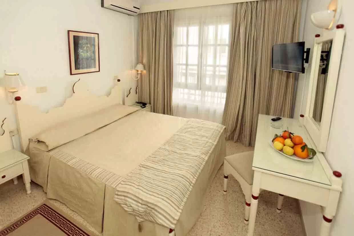 В отеле представлены просторные номера в современном стиле, оборудованные всеми необходимыми удобствами для комфортного проживания. В них есть уютные кровати, ванная комната, телевизор, кондиционер, мини-бар и сейф. Большинство номеров имеют собственный балкон с видами на море или внутренний двор, что создает приятную атмосферу для отдыха.