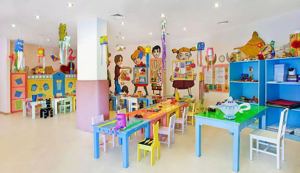 Анимация, детское меню, детская кроватка (бесплатно), детские стульчики в ресторане (бесплатно), игровая площадка, мини-клуб, детский бассейн, аренда детских колясок (бесплатно), няня (за доп плату).