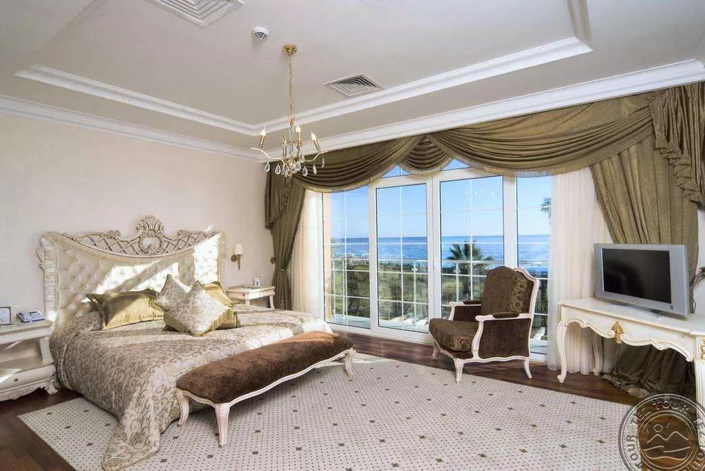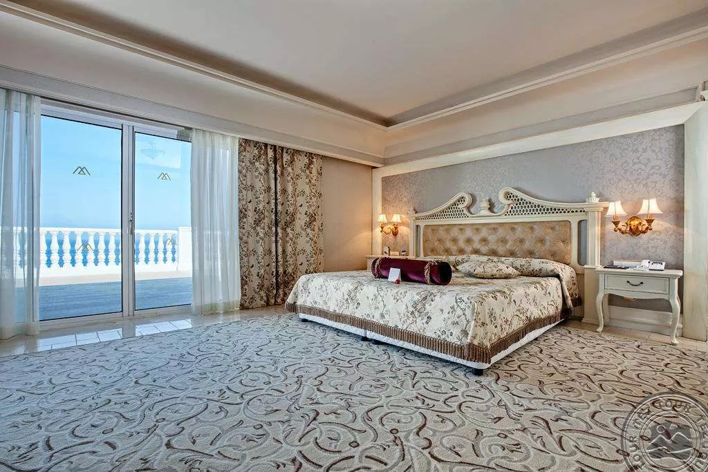2 трехкомнатных Suite Major (2 спальни с french bed, с дверью, гостиная с мягкой мебелью и столом, в одном из номеров американская кухня, рабочий кабинет, 3 тв, 2 ванныe: одна из них с джакузи, другая с душем, гардеробная комната; терраса, оборудованная зонтиками, шезлонгами и столиком (75 м2), макс. 4 чел., 175 м2, VIP-сервис).