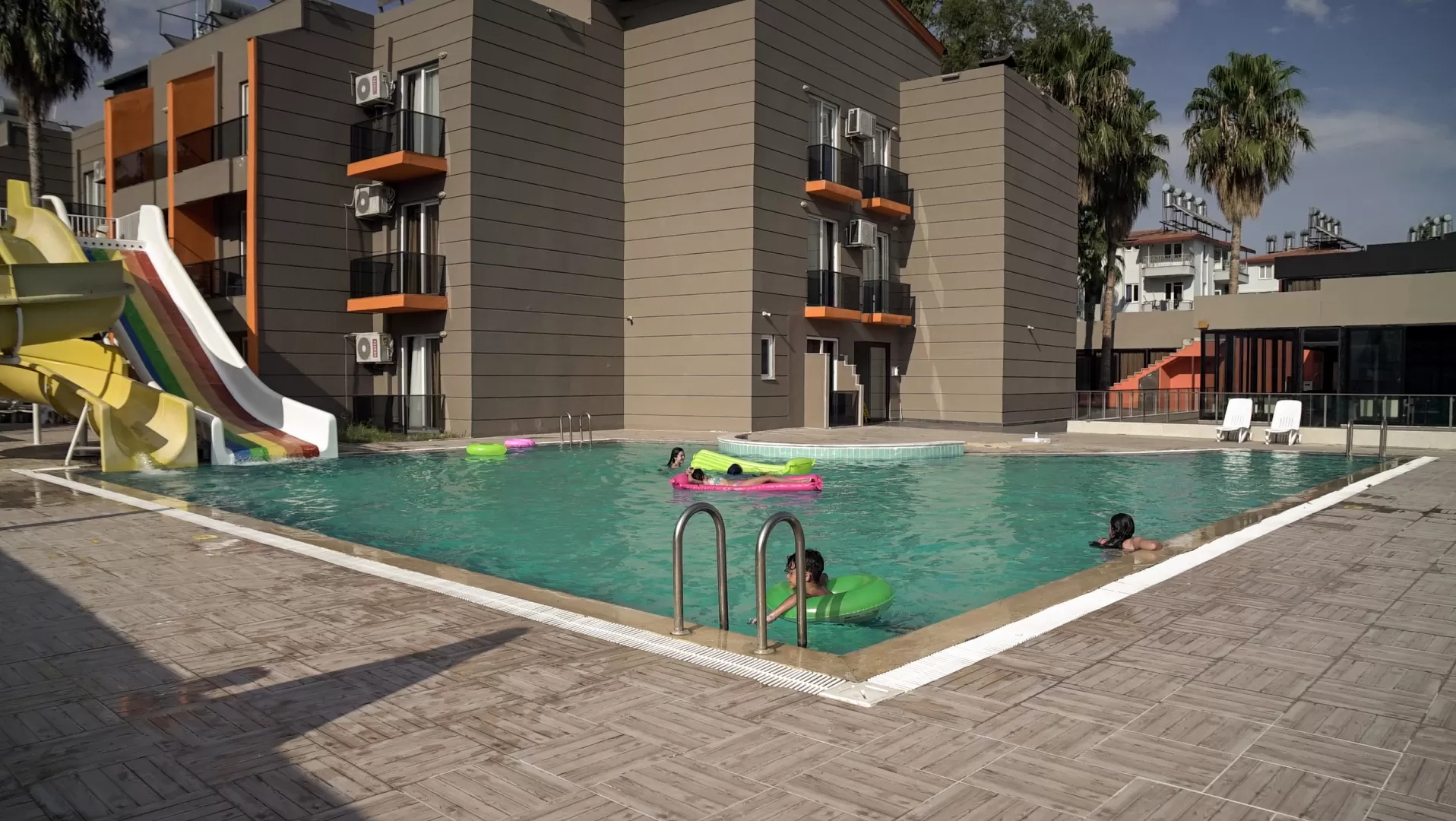 Гости могут наслаждаться плаванием в открытом бассейне площадью 220 кв. м с двумя водными горками. Анимация в отеле спокойная, что способствует комфортному отдыху.