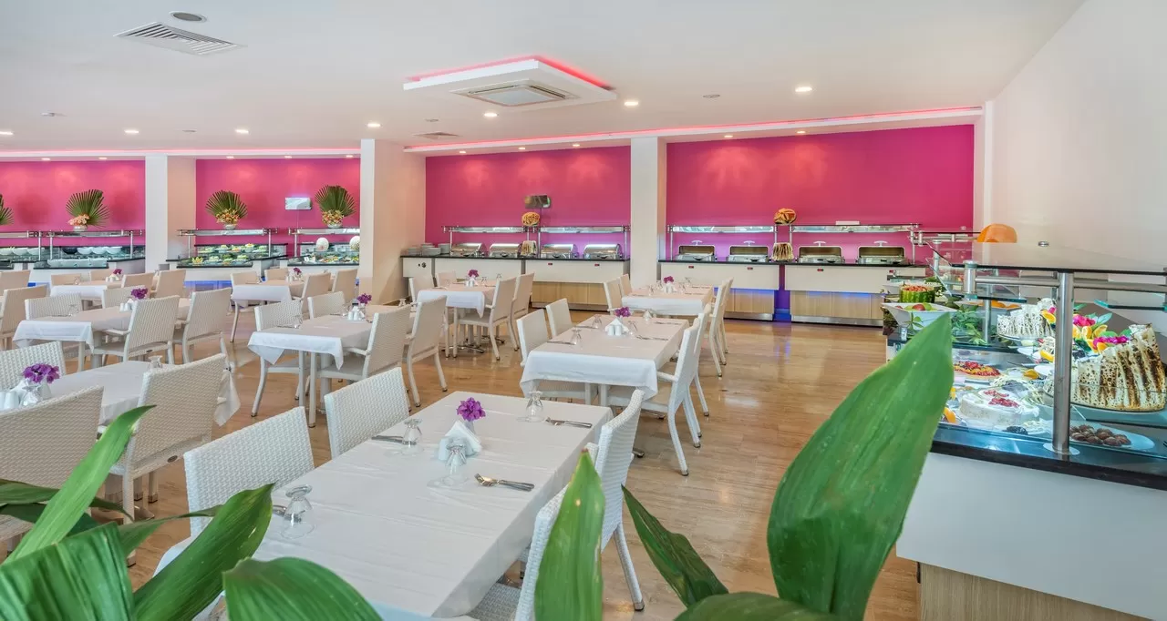 Бар у бассейна работает с 10:00 до 24:00, лобби-бар с 08:00 до 20:00, бар на пляже с 10:00 до 18:00. В основном ресторане сервируется:
