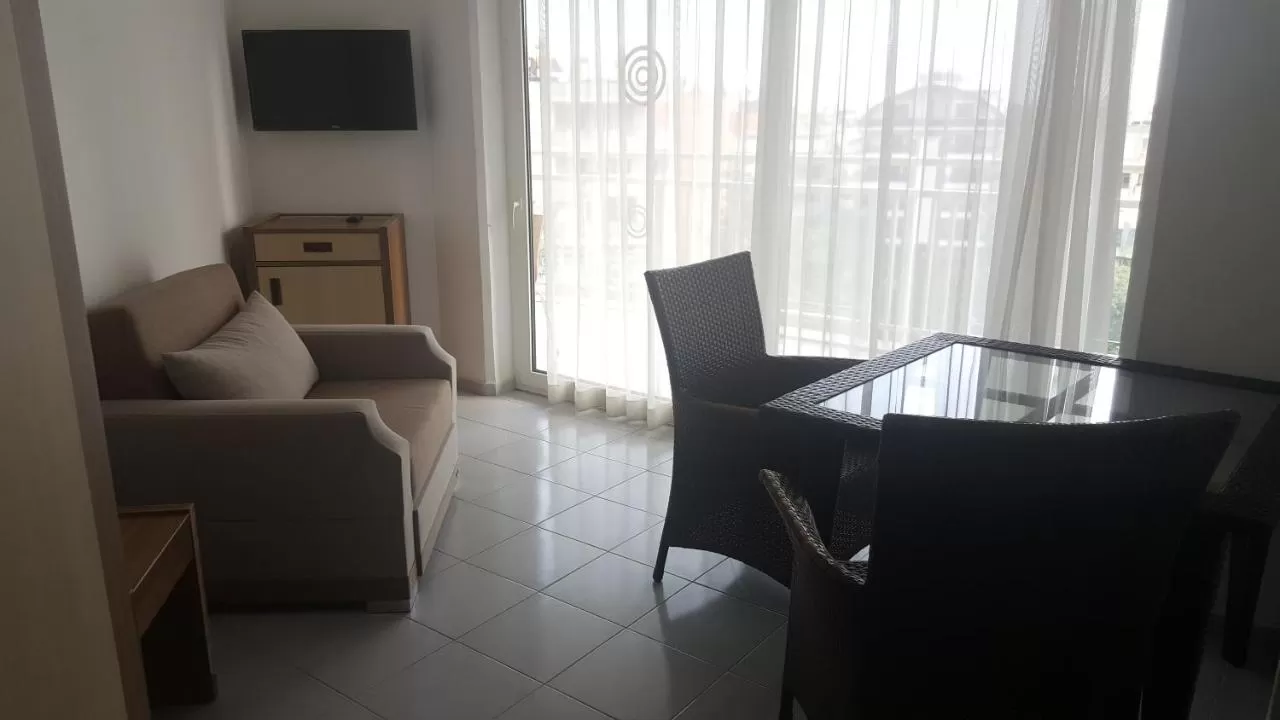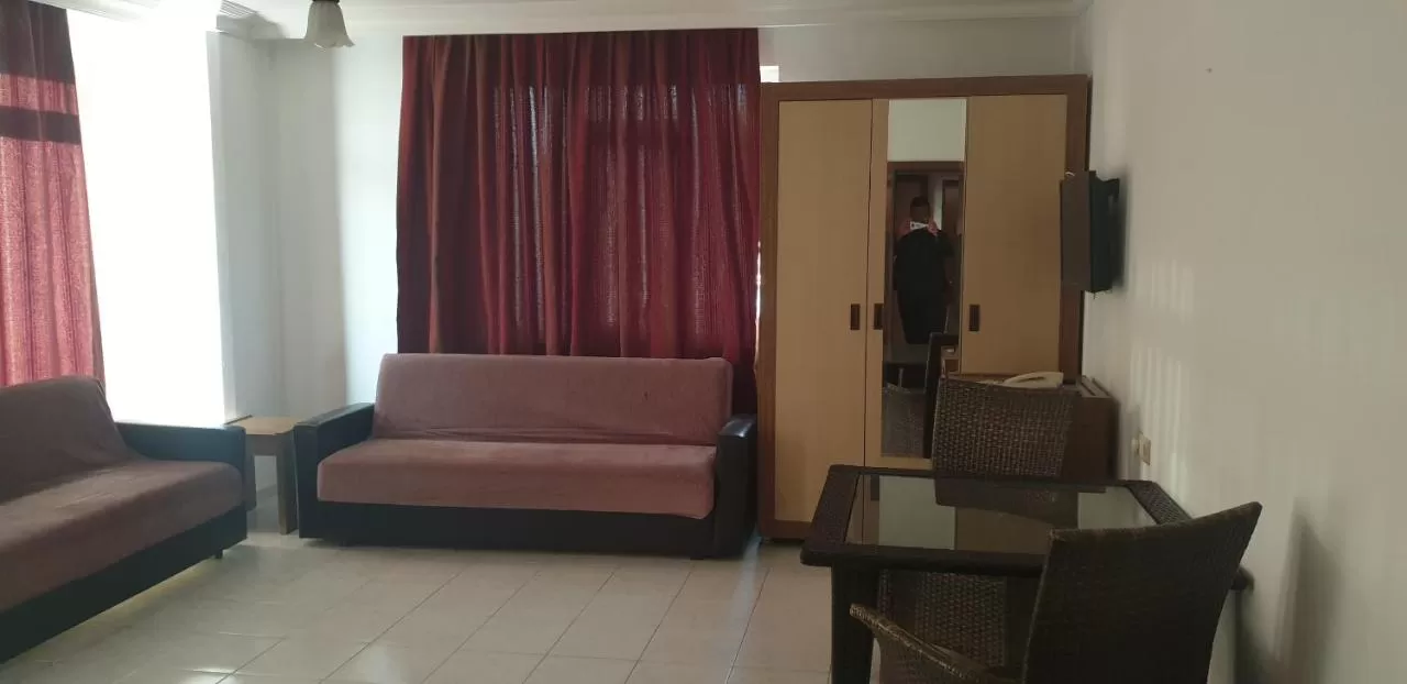 Фен в номере, инд. кондиционер, пол – керамическая плитка, балкон, уборка номера - ежедневно, ТВ - спутниковое (есть русский канал), телефон, душ, смена белья-3 раза в неделю, смена полотенец- 3 раза в неделю, дополнительная кровать (софа), мини-холодильник (пустой), Wi-Fi (бесплатно), сейф (платно), кухонный уголок.
