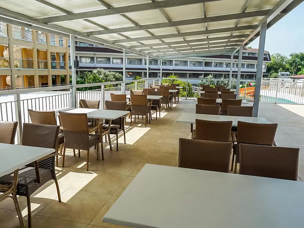 Отель работает по системе All Inclusive (AI), что включает трехразовое питание по системе "шведский стол" в главном ресторане, а также местные алкогольные и безалкогольные напитки, мороженое и закуски в течение дня. На территории отеля также функционируют главный ресторан и бар у бассейна, где гости могут наслаждаться разнообразными блюдами и напитками.Отель предлагает размещение в 100 комфортабельных номерах. В каждом номере есть балкон, телевизор, кондиционер, телефон, сейф, туалетно-косметические принадлежности и ванная комната с душем или ванной. Некоторые номера оборудованы кухнями для удобства гостей. Также доступны семейные номера и номера для некурящих.