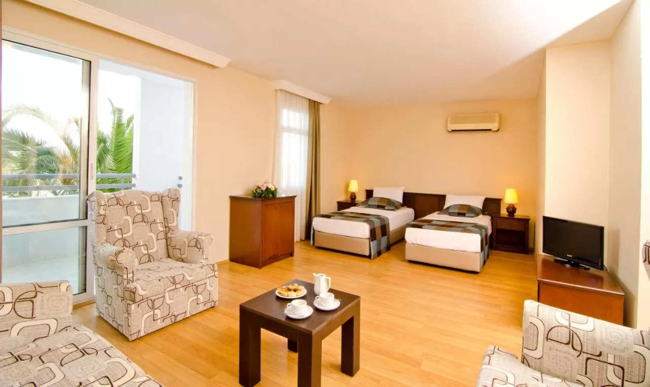 В просторных современных номерах есть балкон, кондиционер, телевизор с плоским экраном и холодильник. Из номеров открывается вид на море или Кушадасы. В собственной ванной комнате предоставляются бесплатные туалетные принадлежности и халаты.