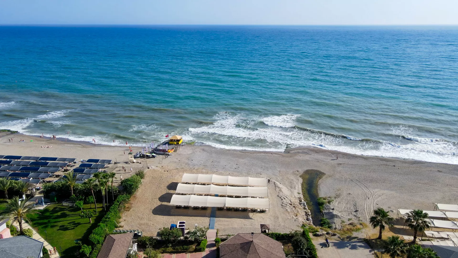 Собственный песчано-галечный пляж отеля находится в первой линии. Гостям предоставляются зонтики, шезлонги и матрасы.