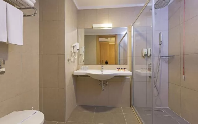 Фен в номере, инд. кондиционер, пол –керамическая плитка, балкон или терраса, уборка номера - ежедневно, ТВ - спутниковое (есть русский канал), телефон, душ, сейф (платно), смена белья-2 раза в неделю, дополнительная кровать (раскладная кровать -по запросу), мини-бар (вода-бесплатно, пополнение 2 раза в неделю), Wi-Fi (платно).