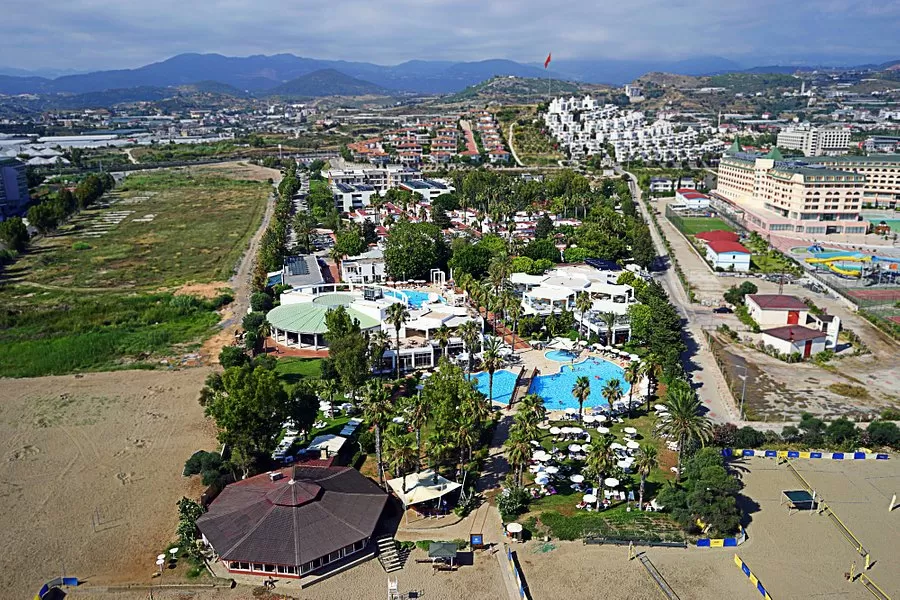 Отель расположен в 1 км от центра поселка Конаклы, в 12 км от города Аланьи, на берегу моря, на побережье Средиземного моря, в 113 км от аэропорта Анталии, в 48 км от аэропорта Газипаша г. Алании.
