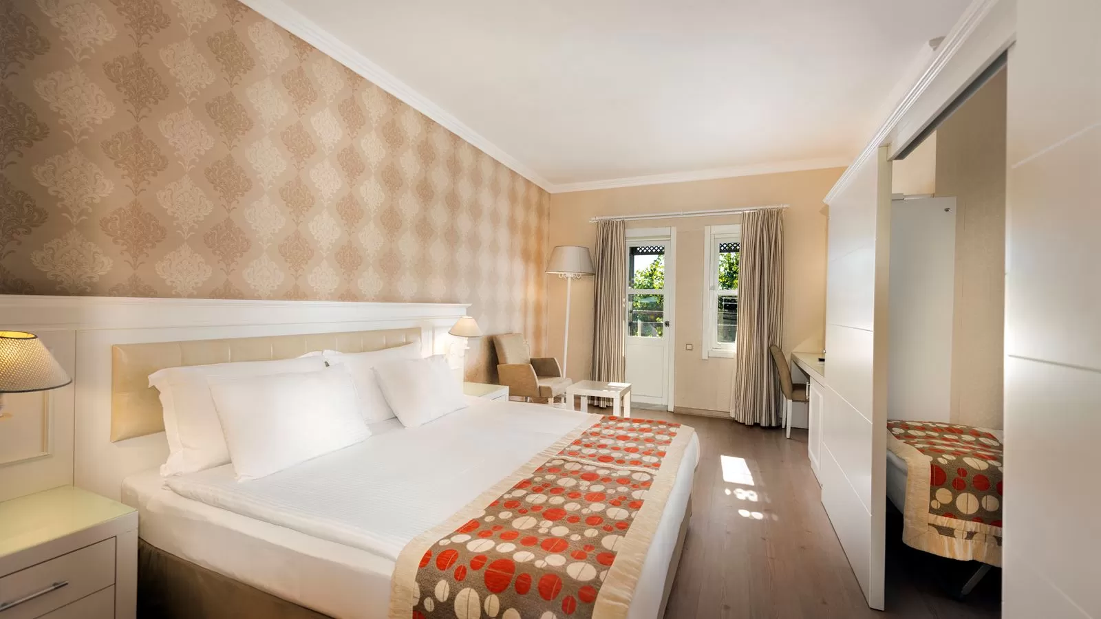 Номера отеля ярко оформлены, оснащены кондиционерами и телевизорами с плоским экраном и спутниковыми каналами. В отеле работает ресторан с блюдами итальянской, османской кухни и морепродуктами. Несколько баров предлагают широкий ассортимент напитков и закусок. Гости могут собирать свежие фрукты и овощи, выращенные на ферме отеля.
