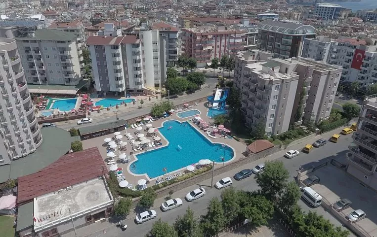 Апарт-отель расположен в 1,5 км от центра г. Аланьи, на побережье Средиземного моря, в 300 м от городского пляжа Клеопатры, в 130 км от аэропорта Анталии, в 40 км от аэропорта Газипаша г. Алании.