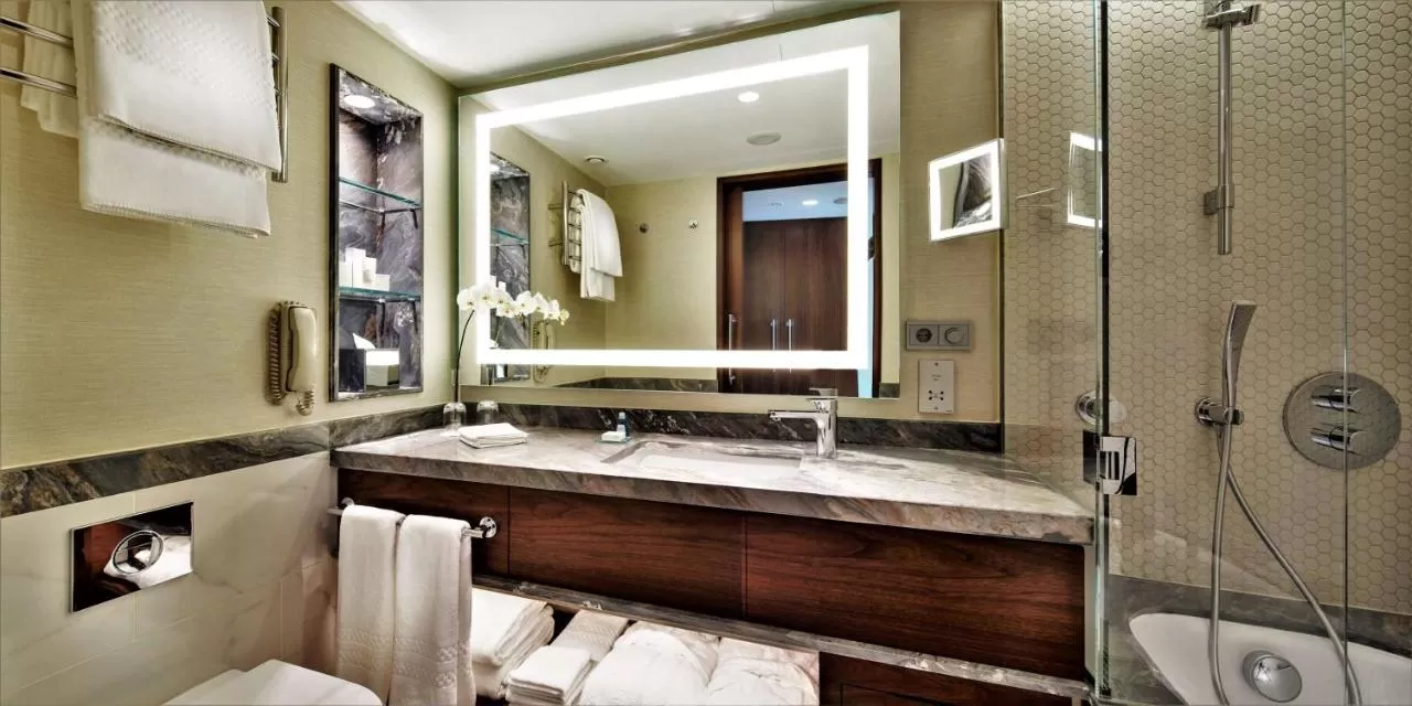 Номера в отеле обставлены роскошной мебелью и оснащены всеми современными удобствами. В каждом номере есть гостиная и рабочая зона, мраморная ванная комната с роскошными туалетными принадлежностями, ЖК-телевизор со спутниковыми каналами, Wi-Fi, кофемашина Nespresso и док-станция iHome.