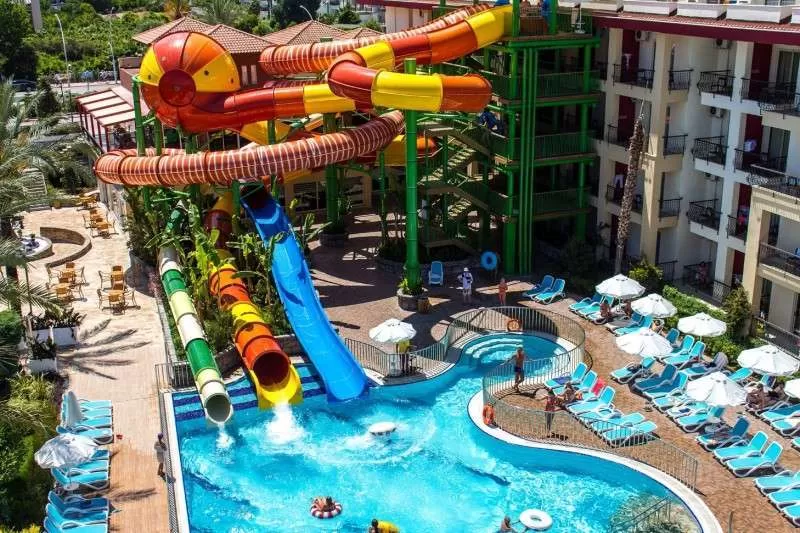 2 открытых бассейна, крытый бассейн, 2 водные горки, конференц-зал (до 300 персон), SPA-центр, теннисный корт (жесткое покрытие), основной и 3 ресторана A’la Carte (Турецкий, Итальянский, Рыбный), 6 баров, дискотека.
