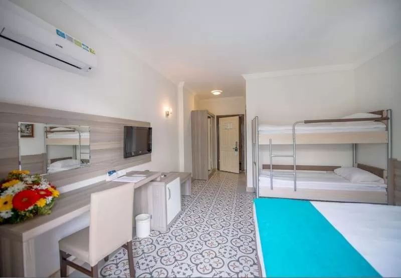 основной 3-х этажный корпус и дополнительное 3-х этажное здание – 305 Standard Rooms (24 м2): индивидуальный кондиционер, мини-бар (прохладительные напитки – ежеденевно / бесплатно), сейф (бесплатно), ванная комната с душевой кабиной, декоративные ковры или керамика; 105 Family Rooms F1 (38 м2): спальня и гостиная с разделительной дверью, одна ванная комната, оснащение стандартного номера; 4 Family Rooms F2 (50 м2): гостиная, две спальни с разделительной дверью, одна ванная комната, оснащение стандартного номера; 2 Ultra Superior Suites (50 м2): декорированные особым образом номера ВИП, спальня и гостиная, разделённые дверью, ванная комната с джакузи, терасса, оснащение стандартного номера.