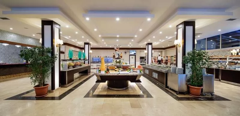 завтрак, поздний завтрак, обед, ужин – шведский стол, горячие и холодные закуски в течение дня, чаепитие, кофе и выпечка, витамин-бар (свежевыжатые соки), сервис мороженого, ужин в ресторанах A’la Carte по предварительной резервации (одно посещение за период проживания), круглосуточно алкогольные напитки местного и с 10:00 до 24:00 некоторые импортного производства на разлив.