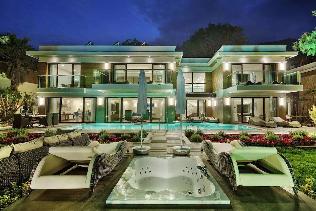 1 двухэтажная villa nirvana (индивидуальный бассейн, вид на море и на бассейн, 6 тв, парная, турецкая баня, сауна, на 1-ом этаже гостинная, столовая, 2 спальни с дверью, 2 ванные, на 2-ом этаже 2 спальни с дверью, 2 терассы, 2 ванные, макс. 5+1 чел., 400 м2)