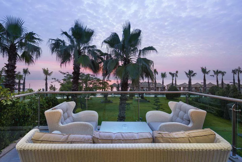 6 двухэтажных royal dublex beach front villas (вид на море и на бассейн, 4 тв, на 1-ом этаже гостинная, столовая, спальня, ванная, на 2-ом этаже 2 спальни с дверью, 2 ванные, 3 терассы, макс. 5+1 чел., 152 м2)