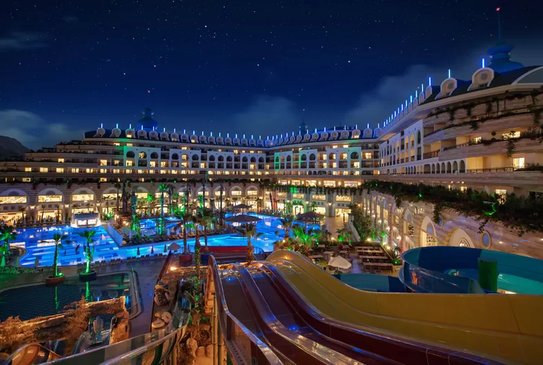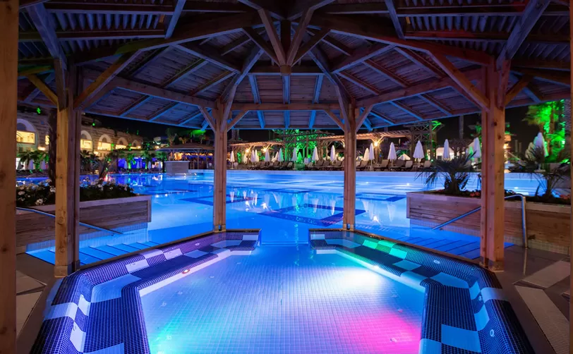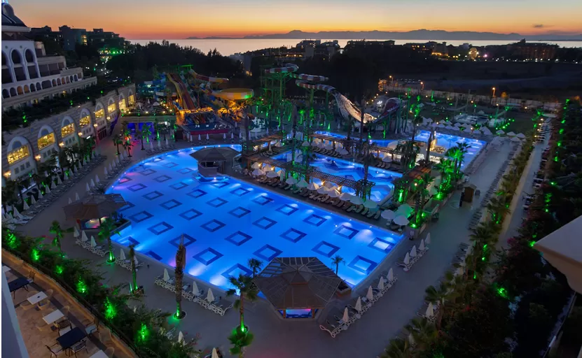2 открытых бассейна, аквапарк (11 водных горок), крытый бассейн, 2 теннисных корта, SPA-центр, 2 конференц-зала (до 1150 мест), основной и 7 ресторанов A’la Carte (Турецкий, Морской, Средиземноморский, Дальневосточный, Мировая кухня, Fine Dining (для взрослых), Bubble Town Kids (для детей), 7 баров, кафе-кондитерская, кинотеатр, дискотека.