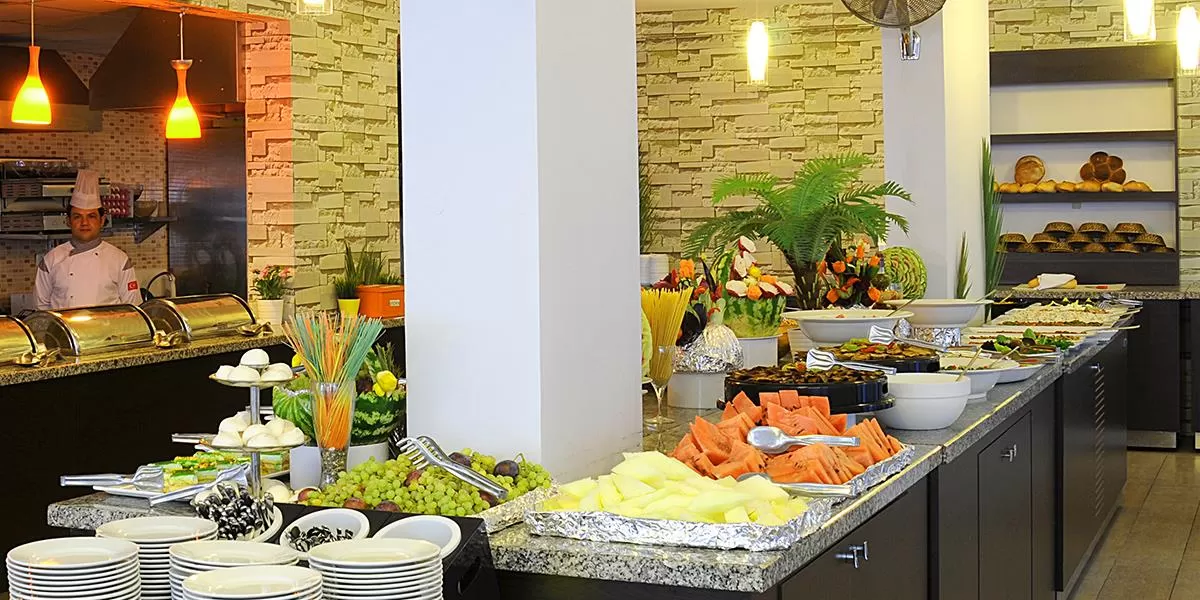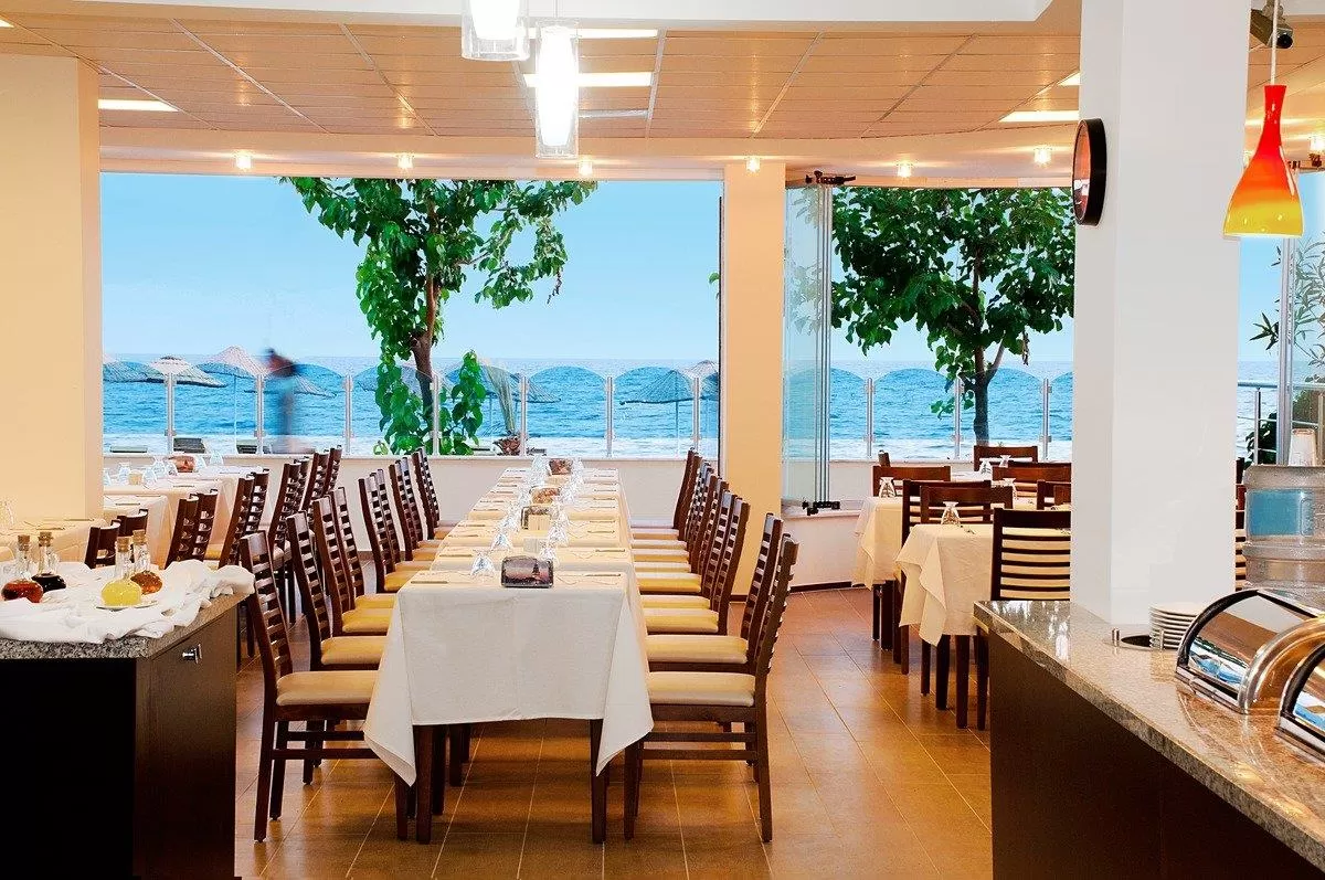 В ресторане Dogan Beach Resort сервируют завтрак, обед и ужин в формате «шведский стол», а также подают по меню блюда средиземноморской кухни. Предлагаются вегетарианское, диетическое и детское меню.