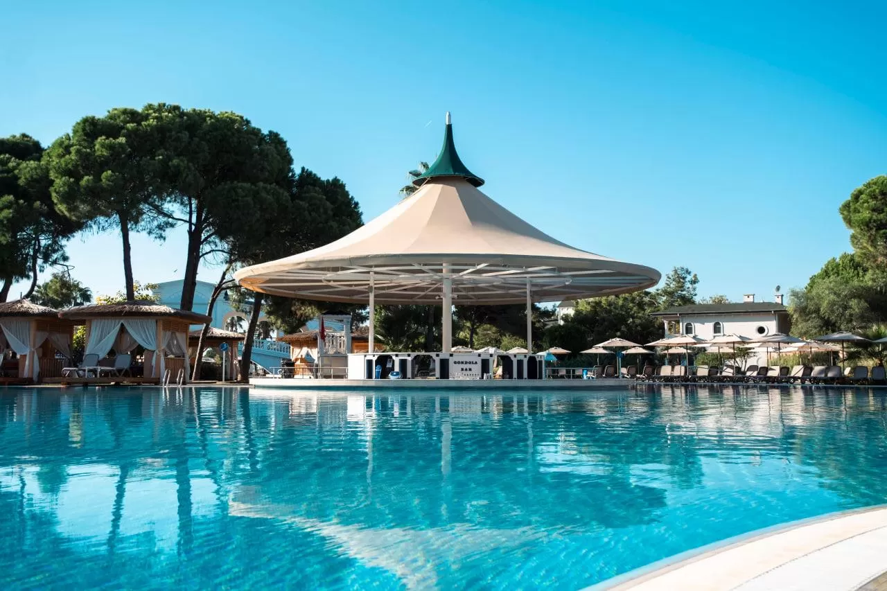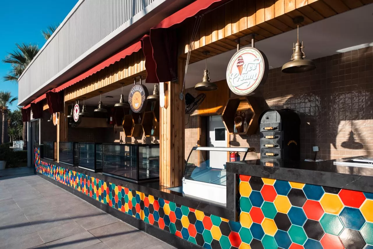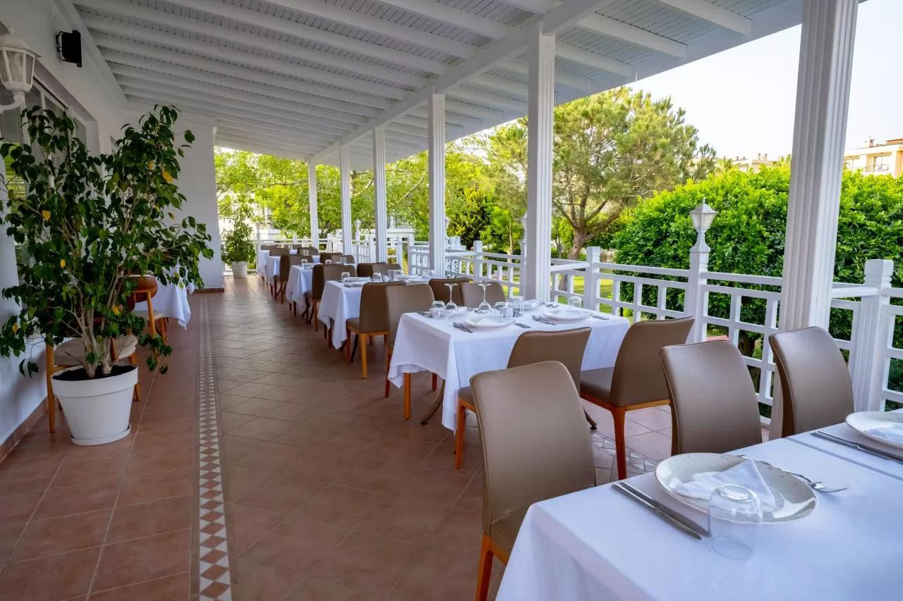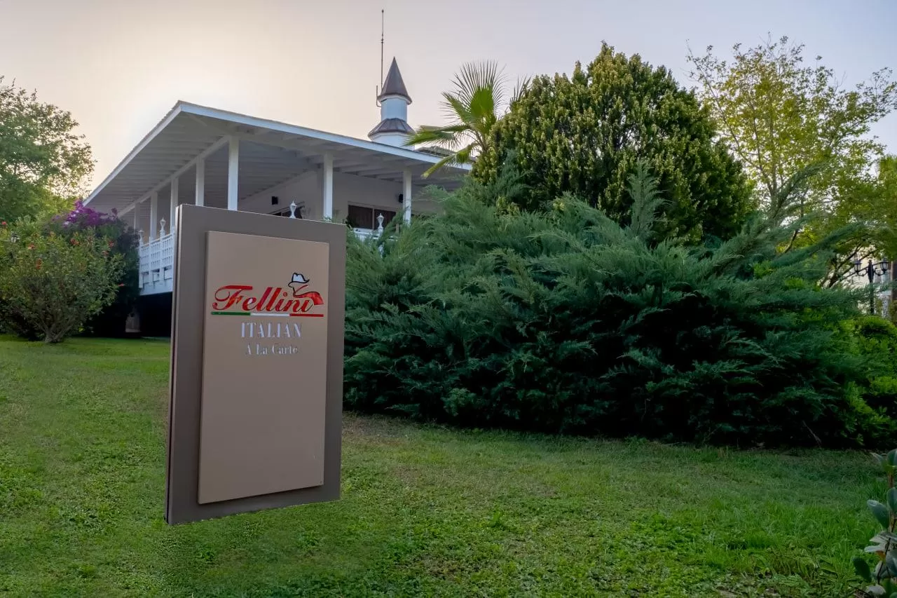На территории отеля работают главный ресторан Ristorante Bellini, снек-ресторан Lido и четыре ресторана a la carte (итальянский, мексиканский, рыбный и турецкий). Также имеется 11 баров и кафе, включая лобби-бар, бары у бассейна и на пляже, кондитерскую, диско-бар, витаминный бар, гёзлеме и снэк-бар.