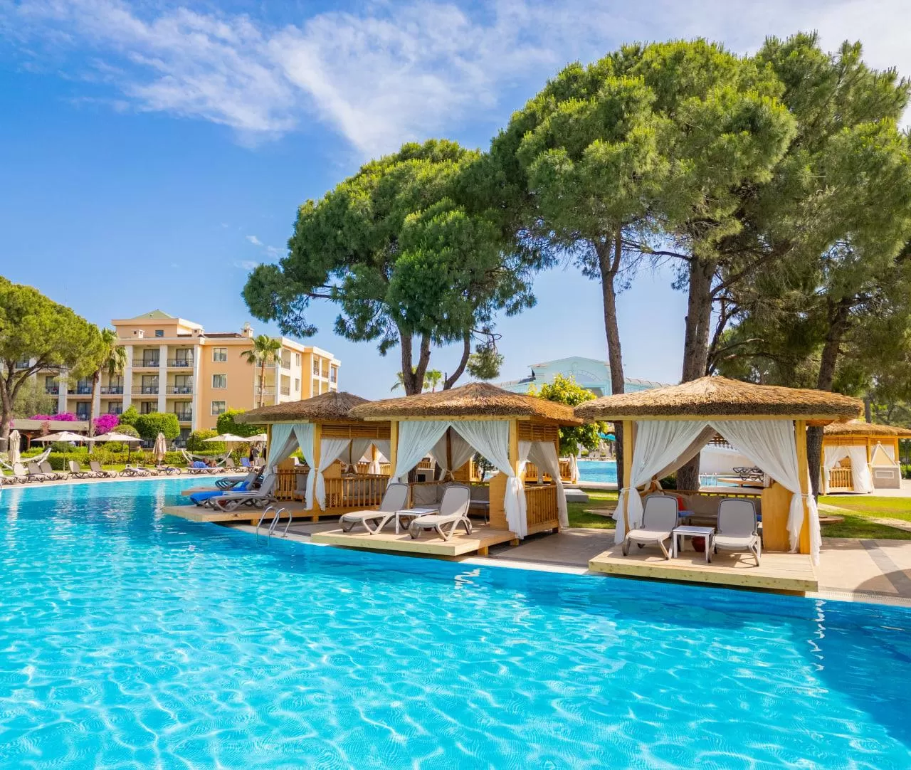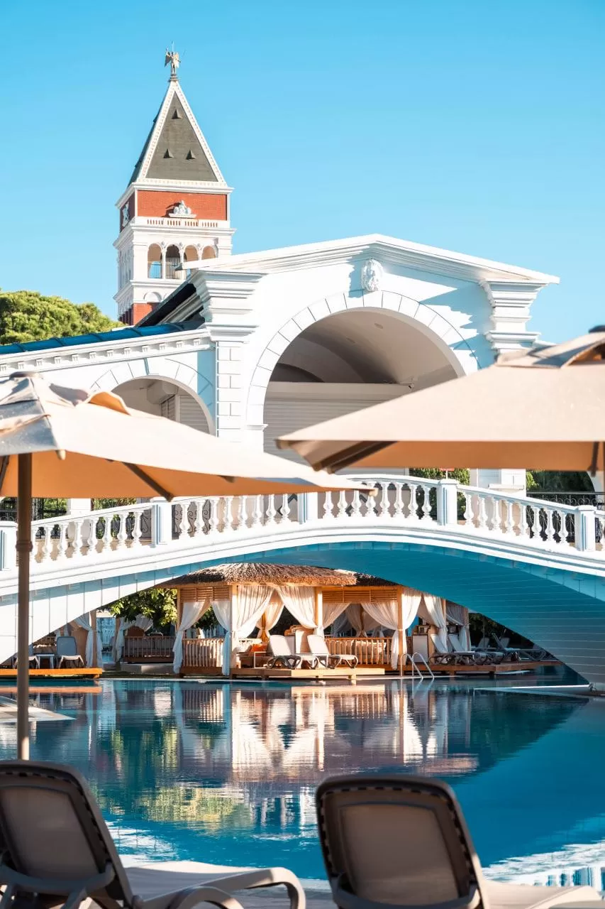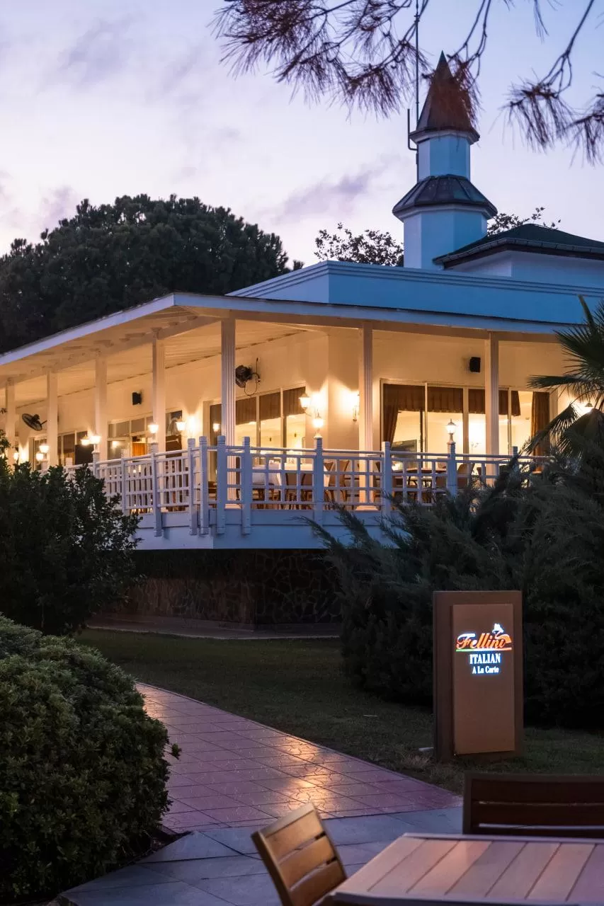 На территории отеля работают главный ресторан Ristorante Bellini, снек-ресторан Lido и четыре ресторана a la carte (итальянский, мексиканский, рыбный и турецкий). Также имеется 11 баров и кафе, включая лобби-бар, бары у бассейна и на пляже, кондитерскую, диско-бар, витаминный бар, гёзлеме и снэк-бар.