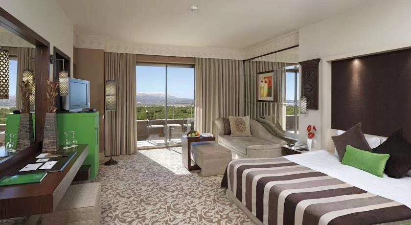 - 5 Resort Suites (макс. 4 чел, 96 м2). Вид на ландшафт. Resort Suite состоит из спальни и гостиной. Во всех номерах ковровое покрытие и балкон. Бесплатные услуги: Персональная встреча гостей и ускоренная процедура регистрации, VIP set upв день заезда ицветы, ежедневная газета и подготовка номера ко сну. Описание: Гостиная, мягкая мебель, спальня, двуспальная кровать, центральная система кондиционирования, мини-бар, электронный сейф, 2 LCD/спут.TV, 2 телефона, фен, туалет и ванная комната с ванной, халат и тапочки, косметическое зеркало, весы.