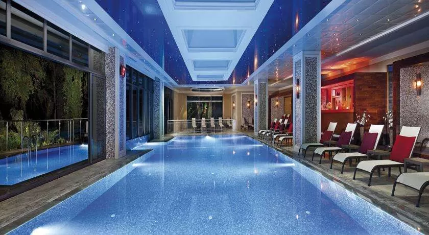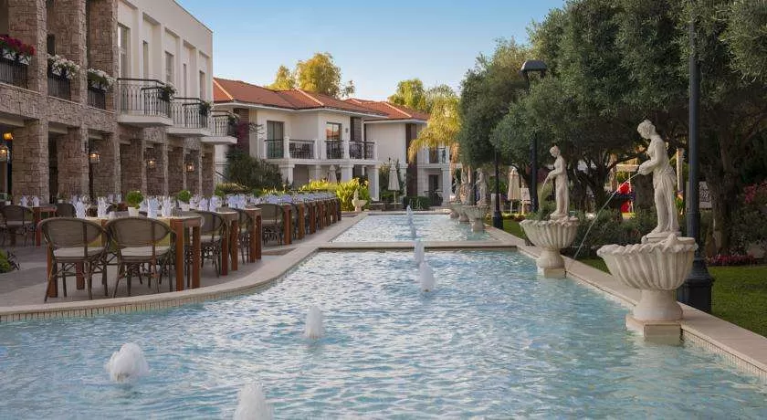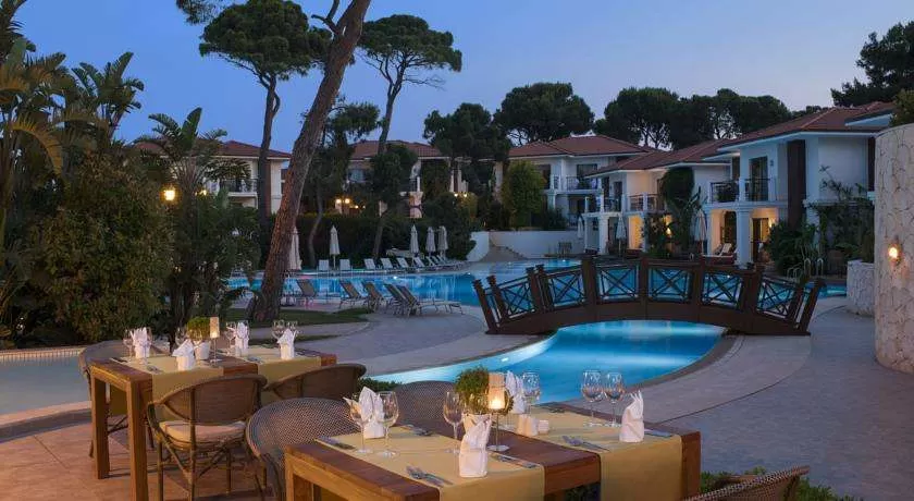 одной из вилл в наличии подогреваемый бассейн), турецкой бани, сауны, фитнес-зала и джакузи в саду. Бесплатные услуги: Персональная встреча в аэропорту,трансфер на VIP транспорте Аэропорт Отель Аэропорт, ускоренная процедура регистрации в вилле, услуги