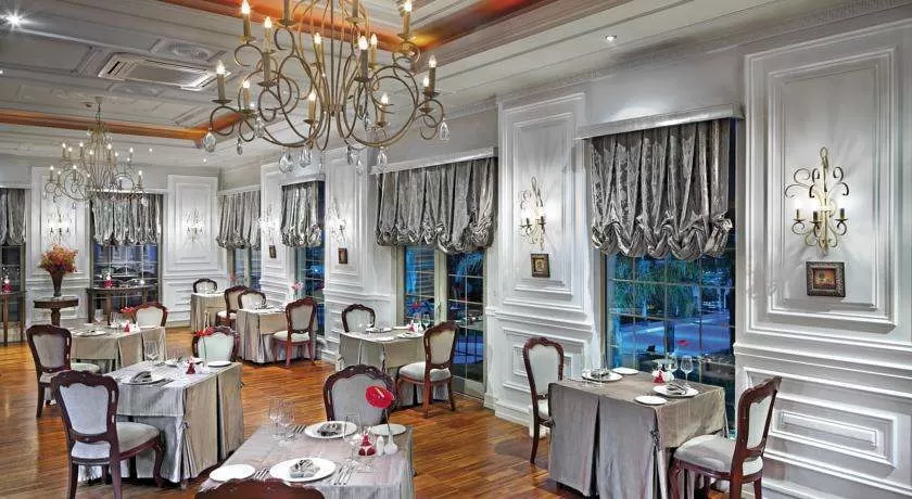 - 1 Ela Prestige Suite (макс. 5 чел.,375 м2). Вид на море. Бесплатные услуги: Персональная встреча в аэропорту, трансфер Аэропорт - Отель - Аэропорт на VIP транспорте, ускоренная процедура регистрации в номере, сервис вномер 24 часа в сутки, резервации во всех ресторанах a la carte за исключением Японского ресторана Teppanyaki,услуги прачечной и химчистки, VIP Set-up, в день заезда:блюдо с фруктами и сладостями, цветы, ежедневная газета, подготовка номера ко сну, ноутбук по запросу, beach suit напляже, услуги дворецкого. Описание нижнего этажа: Гостиная и столовая, паркет и мрамор, мебель класса люкс, кухня (холодильник, плита, духовка), кофемашина, рабочий стол, балкон, туалет, центральная система кондиционирования, спут. TV, телефон. Описание спальни с двумя односпальными кроватями: Высококачественные кровати, мягкая мебель, паркет имрамор, балкон, ванная комната с ванной, душ, туалет, центральная система кондиционирования, спут. TV, мини-бар, телефон, халат и тапочки, фен, косметическое зеркало, весы. Описание спальни с двуспальной кроватью: Высококачественная кровать, мягкая мебель класса люкс, диванчик, гардеробная, паркет, центральная система кондиционирования, мини-бар, спут. TV, телефон, ванная комната с джакузи, душ, туалет, халат и тапочки, фен, косметическое зеркало, весы; терраса с джакузи, место для загара на террасе, шезлонги.