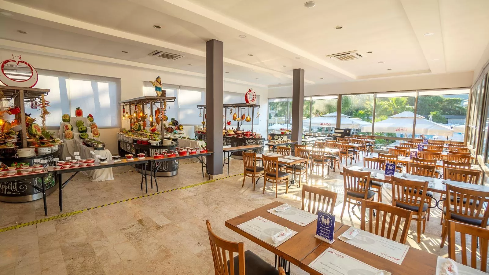 Концепция Ultra All Inclusive (UAI) предлагает трехразовое питание по системе "шведский стол" в главном ресторане, местные и импортные алкогольные и безалкогольные напитки, мороженое и закуски в течение дня. На территории отеля находятся главный ресторан, лобби-бар, снэк-бар, бар на пляже и бар у бассейна.
