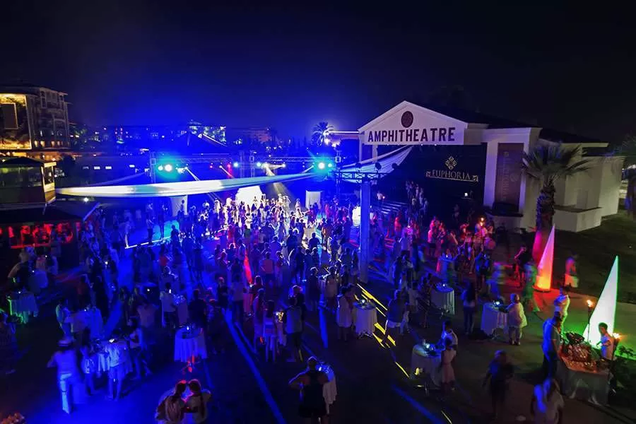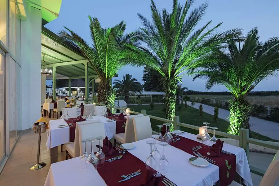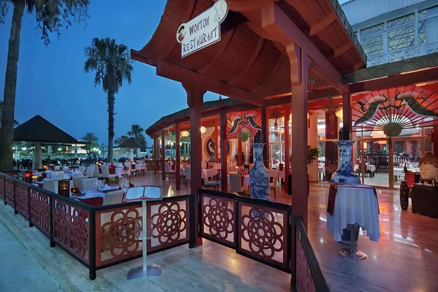 1 открытый бассейн, крытый бассейн, 2 водные горки, 6 теннисных кортов (3 кварцевый песок, 2 - ковровое, 1 жесткое покрытие), 3 конференц-зала, SPA-центр, основной и 5 ресторанов A’la Carte (Итальянский, Средиземноморской, Мексиканский - бесплатно, Азиатский, Рыбный), 5 баров, кафе-кондитерская, кальян-кафе, дискотека (23:00–02:00).