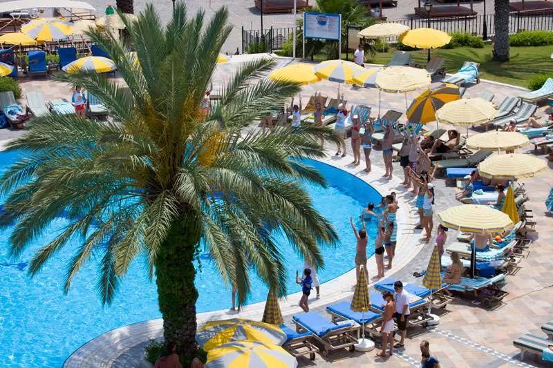 Бесплатные услуги: анимационные программы, турецкая баня, сауна, фитнес-центр, теннисные ракетки и мячи, настольный теннис, пляжный воллейбол, баскетбол, винд-серфинг по лицензии, каноэ, бочча, дартс.