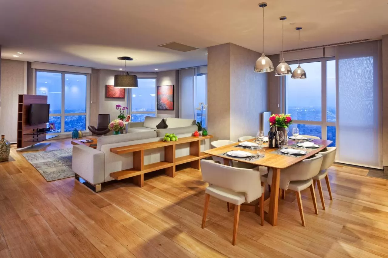 Просторные апартаменты с французскими окнами и дубовыми полами обставлены современной мебелью. Они оснащены современными мультимедийными системами с телевизорами с плоским экраном, DVD-плеерами и док-станциями для iPod.