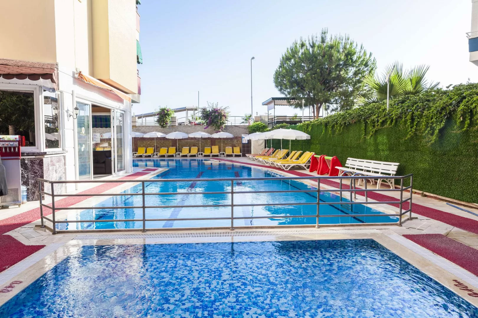 Отель был построен в 2002 году и частично обновлен в 2022 году. На территории отеля находятся главное 5-этажное здание и дополнительный 5-этажный корпус. Гостям предлагаются такие удобства, как аквапарк, спа-центр, фитнес-центр, сауна и турецкая баня. В отеле также есть два лобби, крытый ресторан, три бара, открытый бассейн, детский бассейн и конференц-зал на 50 человек. Отель имеет собственный пляж с подземным переходом.