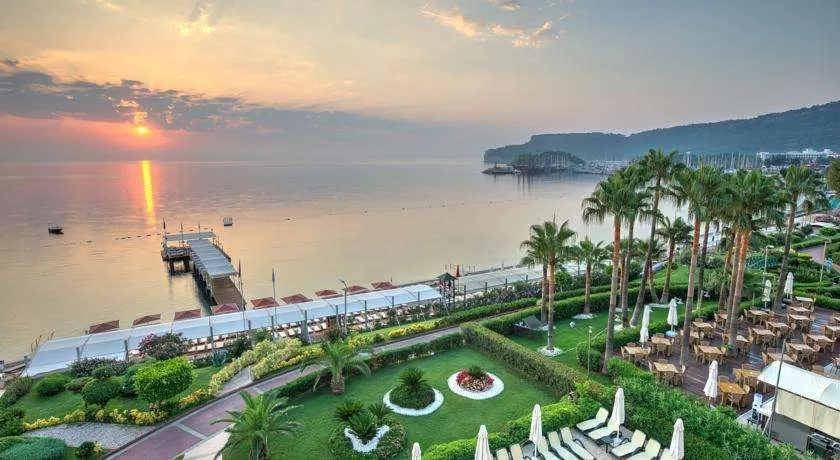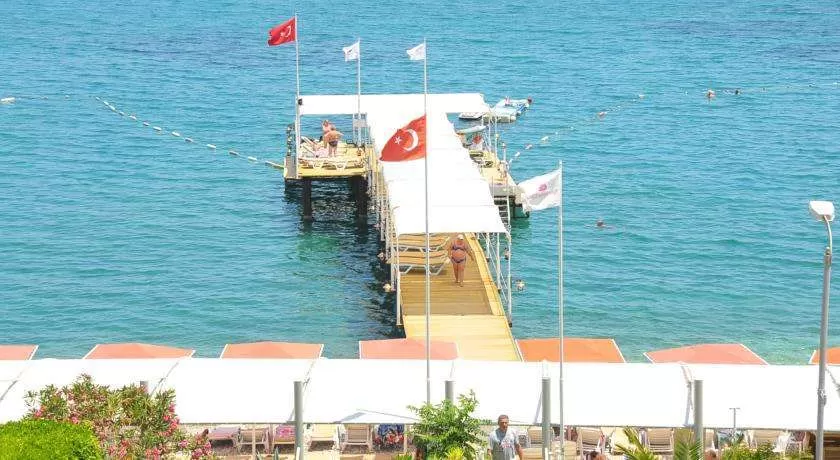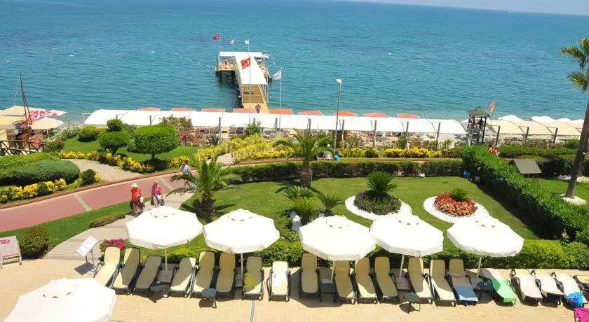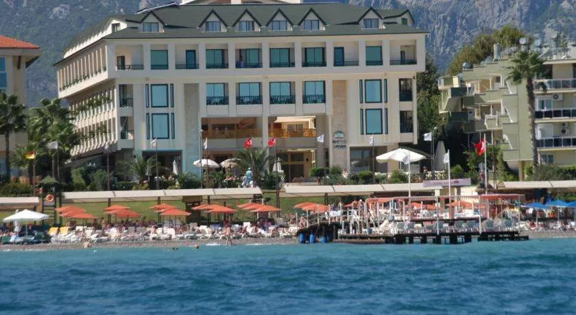 55 км от аэропорта г. Анталия, в г. Кемер, на самом берегу моря.